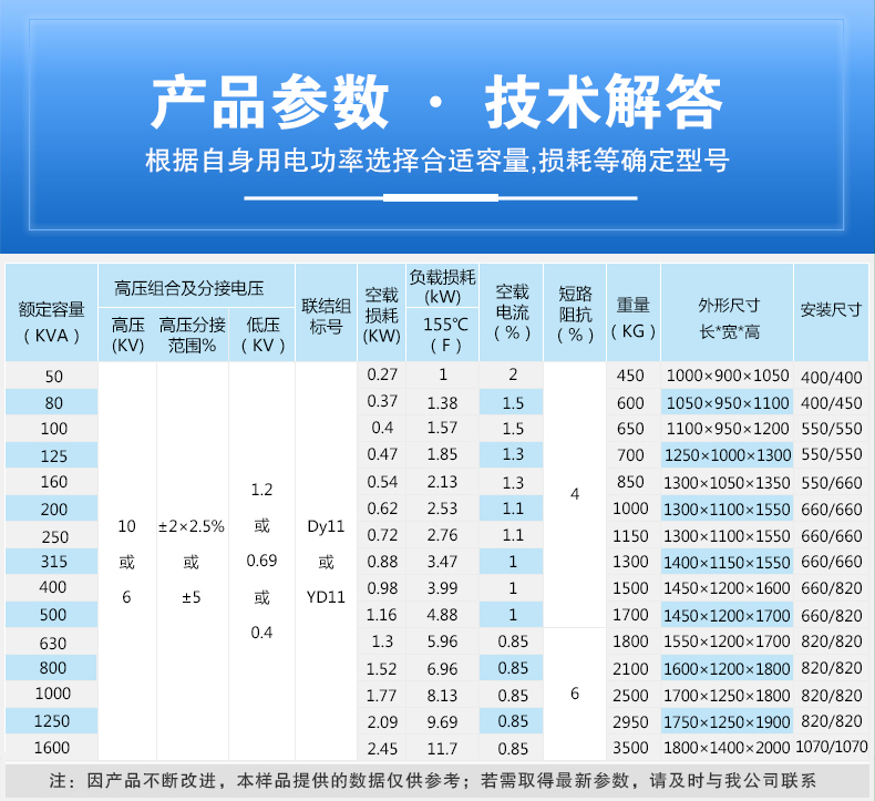【額定容量】:50~2500kva 【額定電壓】:10/6
